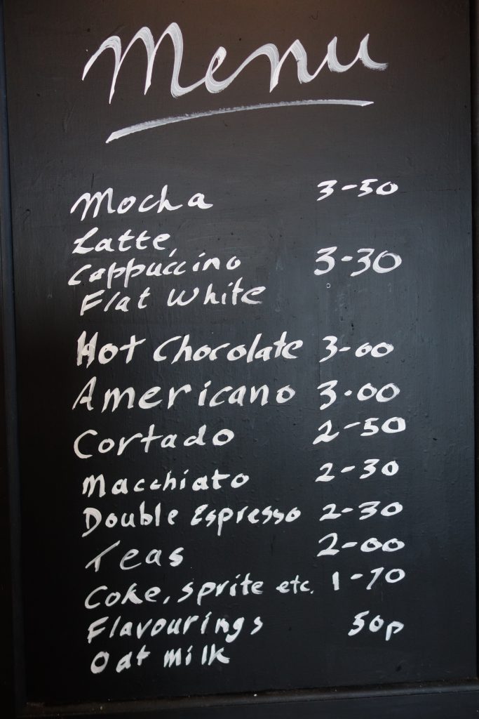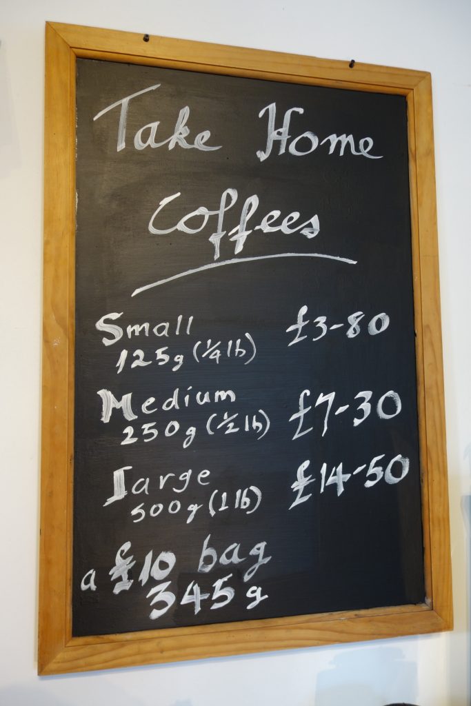 | Prices: Take-home bagged coffees. | Prices: Sit-in or take away drinks |