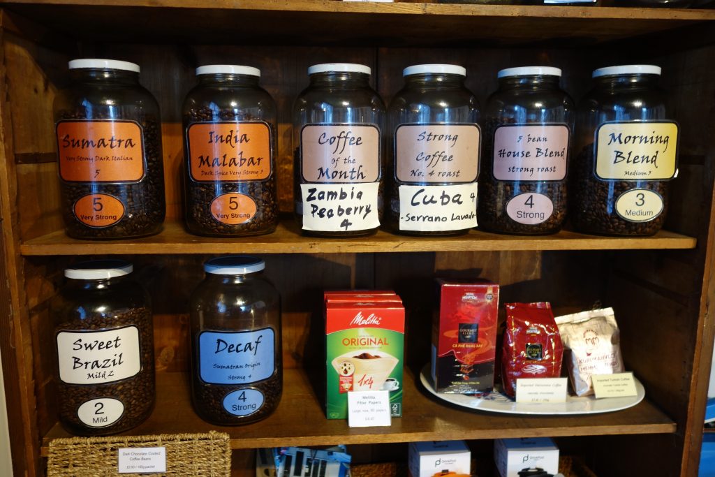 Stocks of fresh roasted coffees, hardware accessories and giftware
